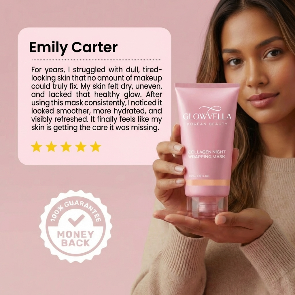 After using this collagen overnight mask, my skin looks smoother, brighter, and more even. My dark spots have visibly faded, and I finally feel confident without makeup.”